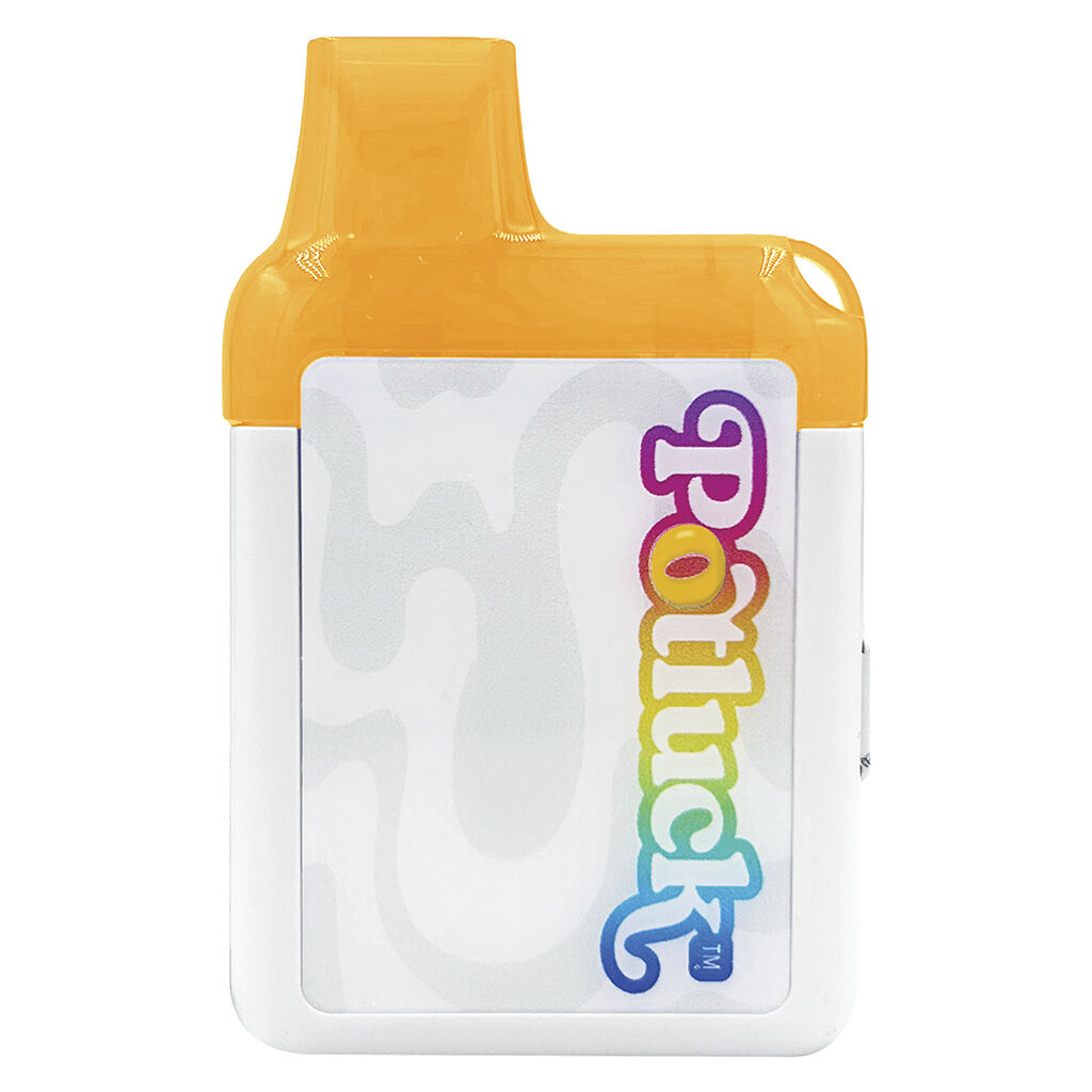 The newest Potluck disposable vape is Mango Hurricane. It combines the fruity taste of mango with hints of citrus. The Mango Hurricane disposable vape unveils a symphony of carefully selected high quality distillate and a balanced blend of botanical terpenes.